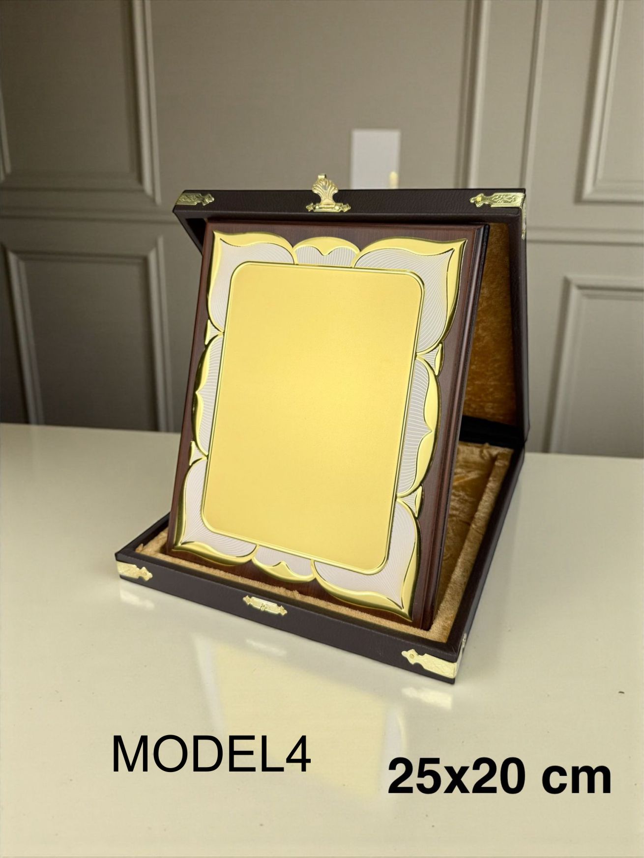 * DERİ KUTULU AHŞAP ÜZERİ METAL BORDÜRLÜ PLAKETLER